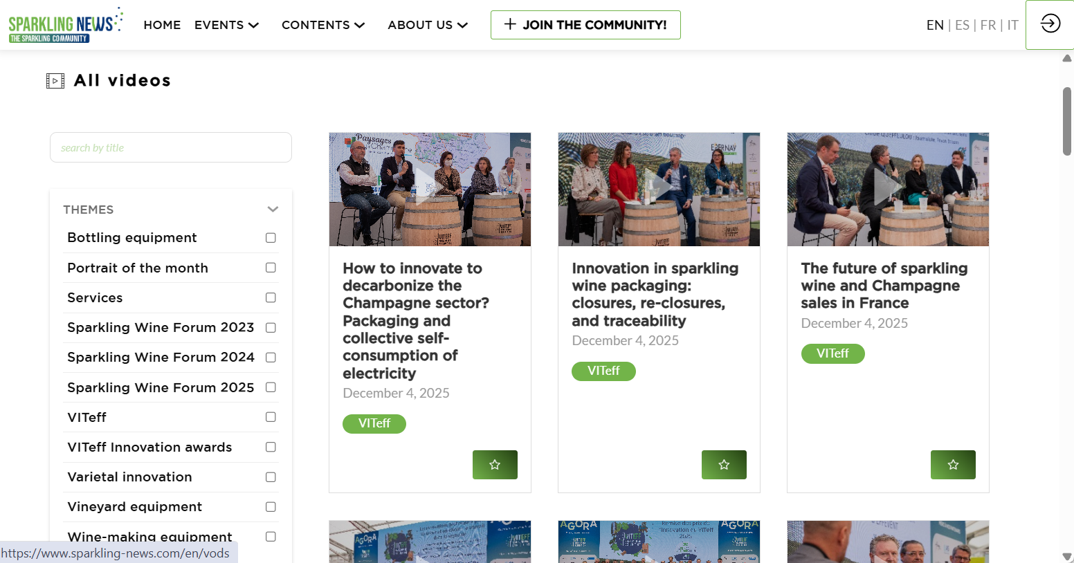 Sparkling News est la communauté dédiée à la recherche et à l'innovation dans le secteur des vins effervescents. Initiative d'EFFEVENT, organisateur du Sparkling Wine Forum et du salon VITeff, elle vise à centraliser toutes les dernières actualités pour favoriser le partage des connaissances et trouver de nouvelles solutions aux défis à venir.